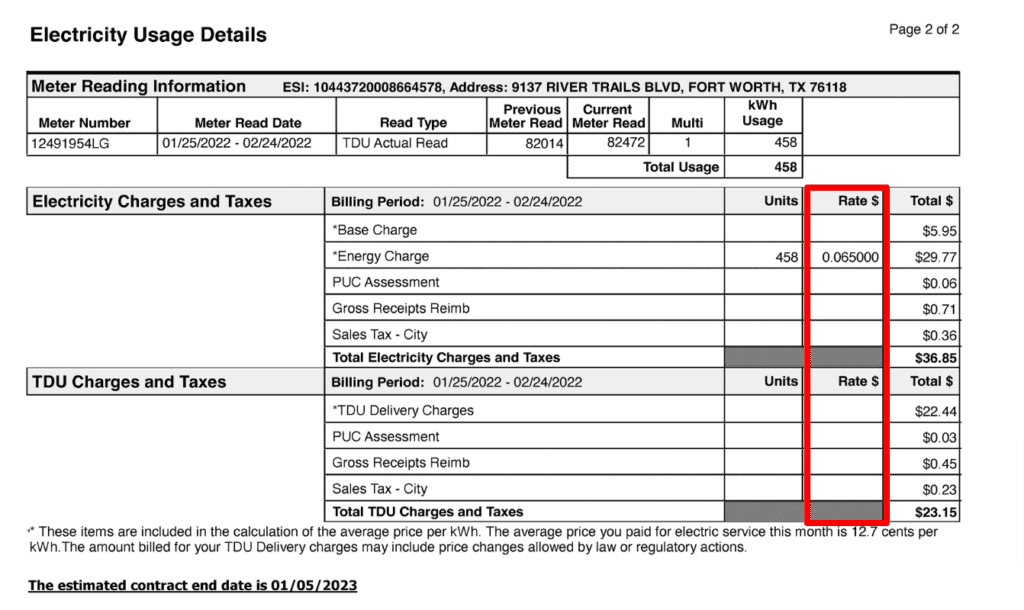 If you’re like most Texans and have a fixed rate, it should be pretty straightforward to double-check the rate listed on your bill and compare it to the rate on your EFL.