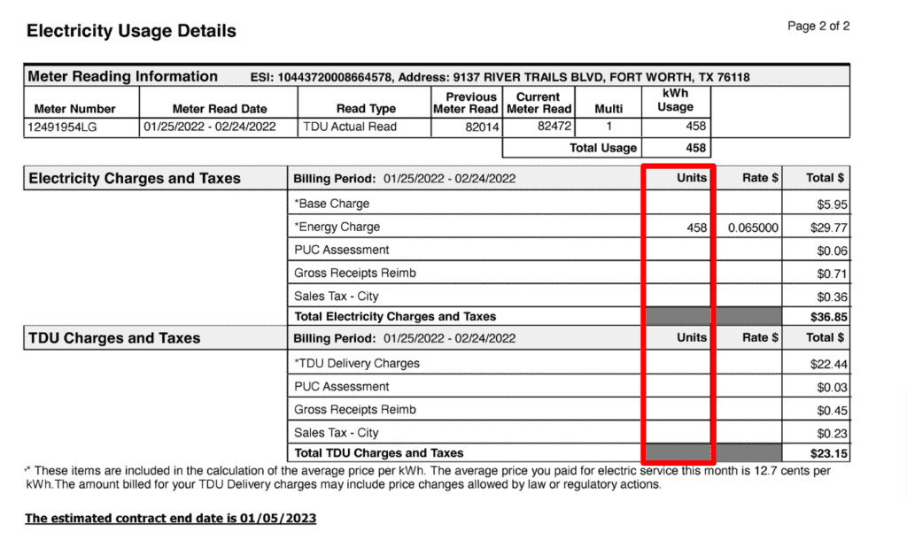Double-check these charges with your contract’s current TDU fees and the TOS doc.