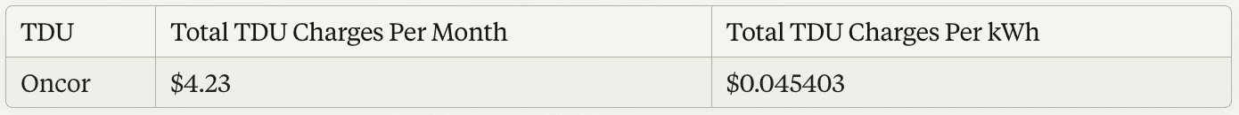 TDU Delivery Charges (Oncor):