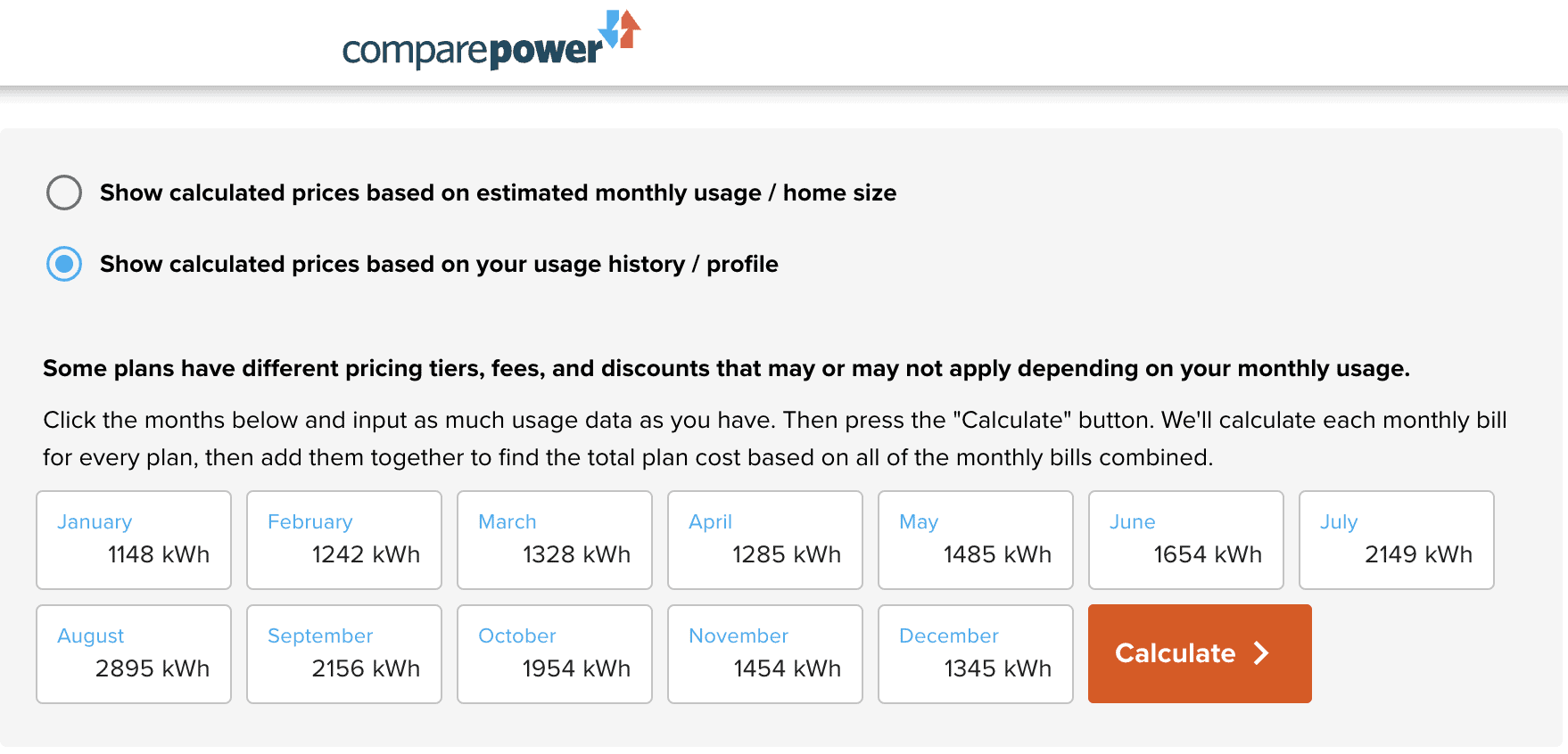 To save time and effort, ComparePower’s savings calculator lets you compare plans based on your usage in just a few minutes.